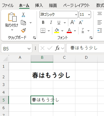 「春はもう少し」の文字列は、太く・大きくなりましたか、B2の「書式設定」項目が B5に「貼り付け」=追加・反映されました。